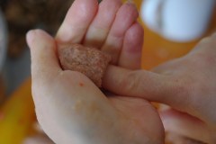 Pendant ce temps, préparer la kebbé en suivant la méthode  présentée précédemment. Mais pour cette recette on prépare des boulettes bien plus petites, qui peuvent être oblongues ou complètement rondes (farcies ou non). Pour les boulettes rondes : prendre un petit morceau de pâte et le rouler entre les paumes des mains humidifiées.