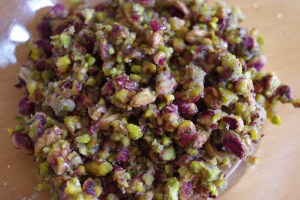 1. Le atr permet et de sucrer la farce et de former une pâte (de pistaches). Tu peux le remplacer par du miel mais l’avantage du atr est que ça a un goût neutre.