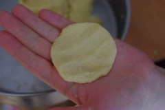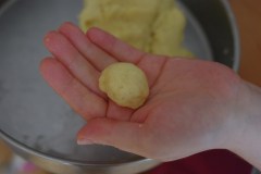 Former des petites boules de pâte. En prendre une et l’étaler dans votre main