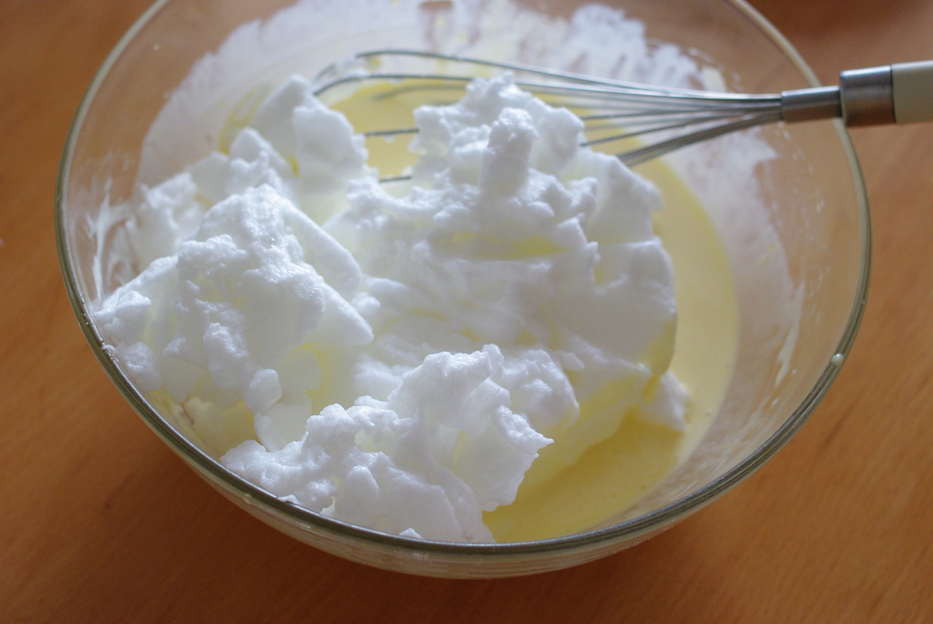 Battre les blancs d’oeufs en neige et les incorporer délicatement à la préparation précédente.