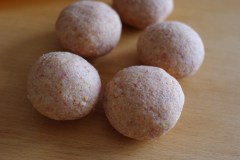 Former des boules de pâte (1). Prendre une boule, la mettre dans un sachet en plastique (de congélation) (2).