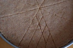 On peut ajouter une amande sur chaque losange ou presser avec le doigt chaque losange (c’est décoratif et la pâte adhère mieux)