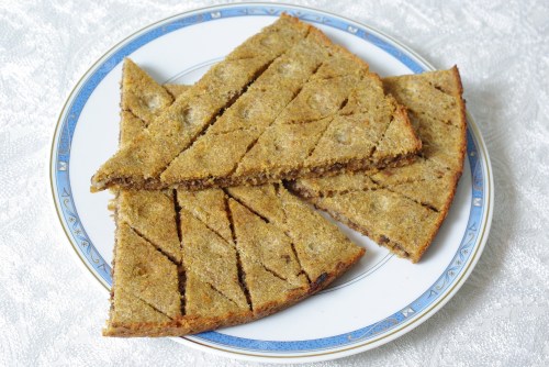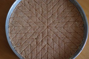 Après une petite absence, me voilà de retour avec une nouvelle recette de kebbé que vous avez pu voir en photo dans ce billet . La Kebbé b’seniyé [كبة بالصينية] ou « kebbé dans un plateau » est l’une des nombreuses variantes de kebbé que l’on trouve en Syrie et aussi l’une des plus répandues, elle se présente sous la forme d’un gâteau et est cuite au four. Elle est formée de 2 couches de pâtes enveloppant une couche de viande hâchée et de fruits secs (noix). Avant la cuisson, on décore la kebbé avec des formes géométriques, la déco que vous trouverez ci-dessous est celle que m’a apprise ma grand-mère paternelle.