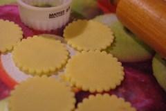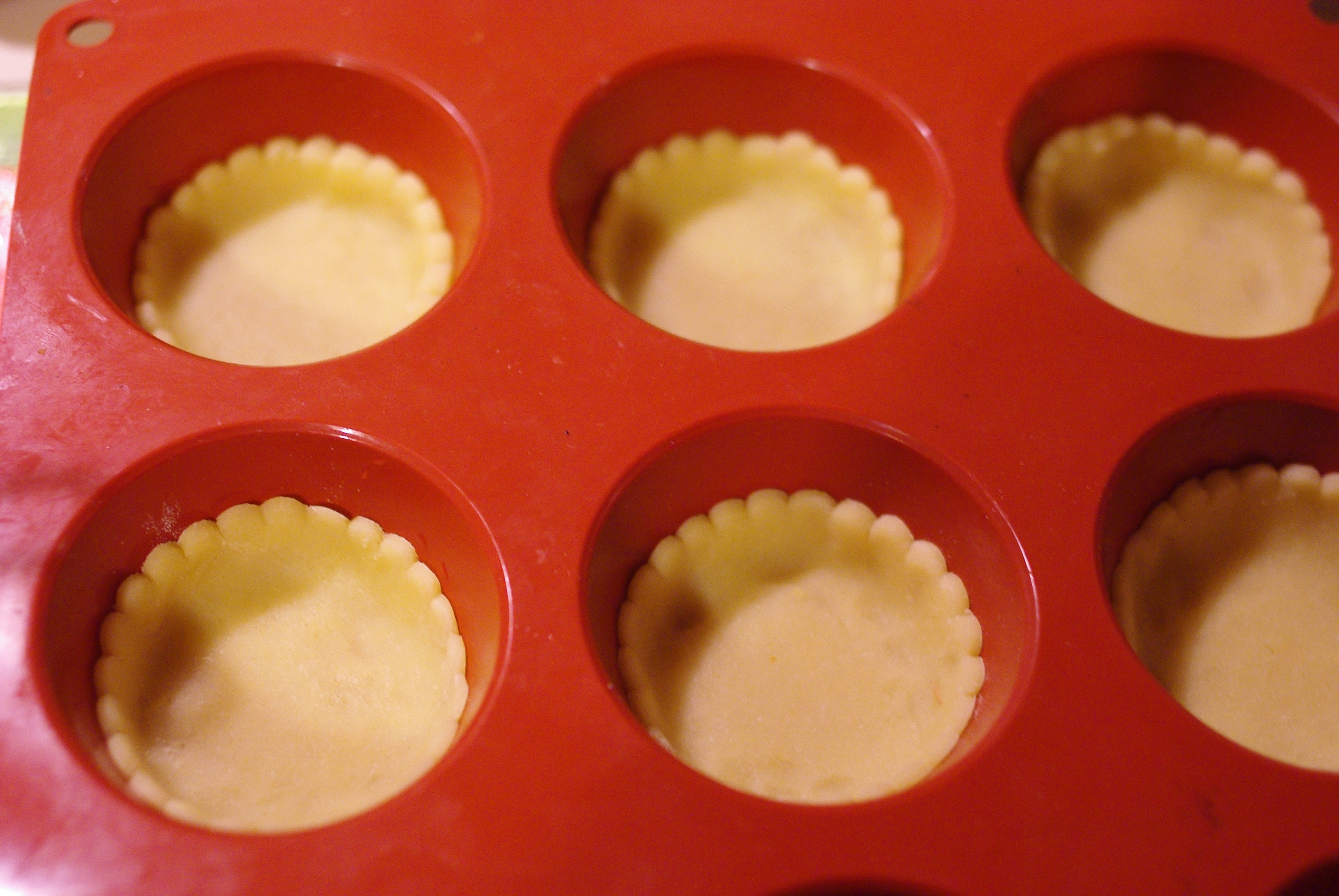 – Etaler la pâte sucrée puis découper des fonds de tartelettes. Les disposer dans un moule à muffins.