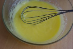 Mélanger les oeufs avec le sucre et le jus des citrons préalablement pressés (vous pouvez aussi si vous le souhaitez ajouter les zestes des citrons)