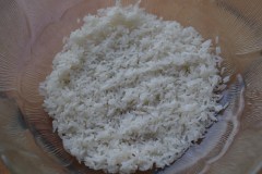 Laver 100 g de riz (1 verre). Le faire cuire dans 3 verres du bouillon précédent.