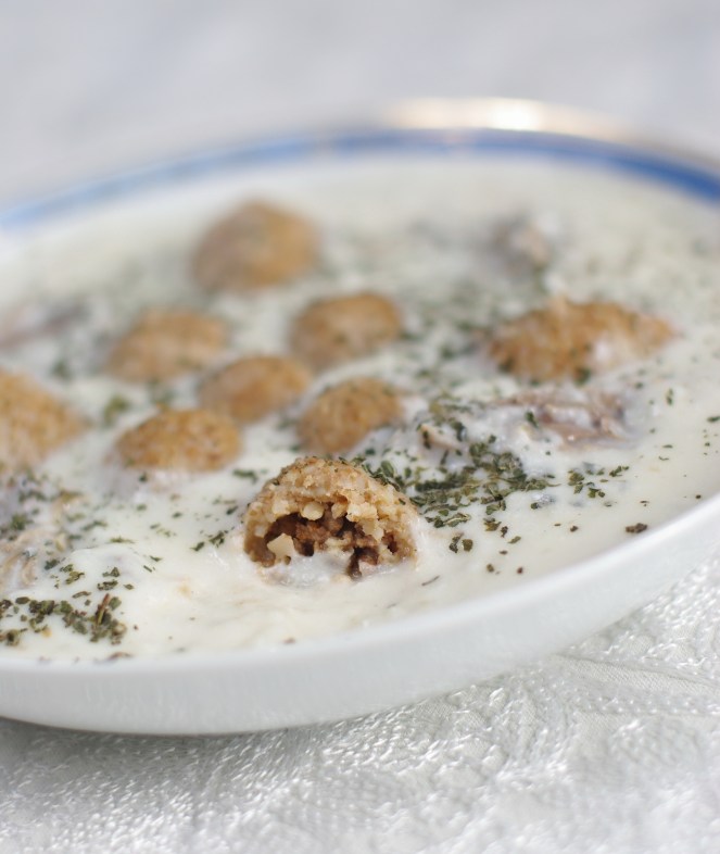 1. ça m’a beaucoup intéressée; ma grand-mère qui vient de Saida au sud du Liban la faisait avec des boulettes non farcies et pas de viande, juste le yaourt et du riz; mais ta recette est aussi merveilleuse et j’apprécie les variations régionales de ce plat qui mérite d’être connu au-delà des cercles levantins.