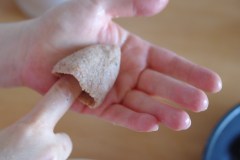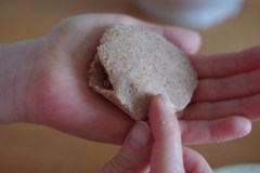 Prendre une boule de pâte, l’aplatir pour former un disque.