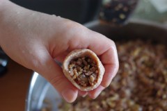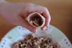 Déposer une bonne cuillère de farce. Puis refermer avec un second disque, en pinçant les bords.