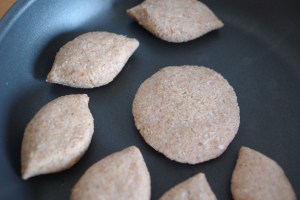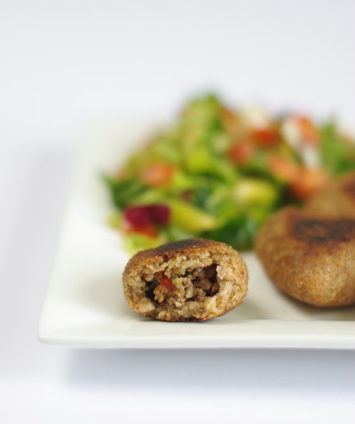 L’Eté approche et la période des barbecues aussi ! Voilà donc une recette bien goûteuse : la kebbé mechwiyyé [كبة مشوية], kebbé grillée normalement à la braise. C’est l’une des variantes de kebbé que je préfère, un délice !  Elle est par contre bien calorique  (comme beaucoup de bonnes choses 😦 ), car sa farce consiste en de la graisse de rognons de mouton, appelée chahmé [شحمة] en Syrie. Pour diminuer cette teneur en graisse qui n’est pas très bonne pour la santé, des maîtresses de maison mélangent cette farce à de la viande hâchée comme pour la kebbé me’liyyé. A Damas, on ajoute à la graisse, de la mélasse de grenade et des graines de grenade, une agréable note d’acidité ! On retrouve plusieurs formes traditionnelles pour cette sorte de kebbé : des disques, des « darawich » (boulettes oblongues) aplaties ou encore en triangle.