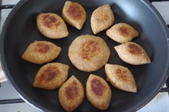 Au barbecue, ou : disposer les kebbés dans une poêle à fond épais (surtout ne pas ajouter de matière grasse, il y en a suffisamment à l’intérieur !) et la mettre à chauffer à feu vif. Retourner les kebbés plusieurs fois. Il faut que les faces soient bien grillées, et que la graisse fonde (elle ressort légèrement à la surface).