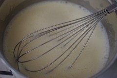 Dans une casserole, faire chauffer à feu moyen le lait, la crème, le sucre et la vanille.