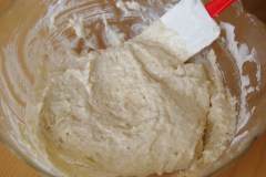 Monter les blancs en neige avec les 50 g de sucre. Les incorporer délicatement au mélange sec.