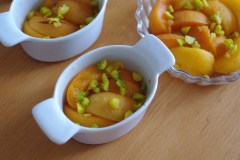 Plusieurs kilos d’abricots à la maison, il fallait bien en faire quelque chose (d’autre que la confiture) ! J’avais envie d’une tarte ou d’un trifle aux abricots et aux amandes  mais aucune trace de ces dernières 😦 J’ai finalement trouvé quelques pistaches mais insuffisantes pour en faire un ingrédient principal, elles ont donc fini en éclats dans de simplicimes crumbles ! Si vous ne savez pas quoi faire de vos abricots, voilà donc une recette ultra facile et ultra rapide pour un bon petit dessert de saison.