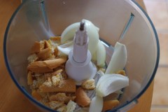 Mettre les « kaak » et l’oignon dans un mixeur. Mixer. Ajouter ensuite les cerneaux de noix. Ne pas mixer complètement, il faut garder du croquant.