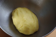 Ajouter ensuite l’eau de fleur d’oranger et compléter avec de l’eau pour ramasser la pâte. Former une boule.