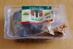 La pâte de dattes que j’ai utilisée vient des Emirats Arabes Unis, elle est ultra moelleuse et d’une couleur bien foncée (par rapport à la pâte de dattes algérienne ou tunisienne), je n’ai pas rajouté de beurre.