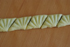 Aplatir à l’aide de la planche à makroud. Découper avec un couteau.