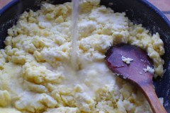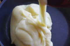Mélanger vigoureusement  jusqu’à obtenir un bloc de pâte. Retirer du feu.