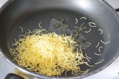 Dans une poêle, faire revenir les vermicelles dans du beurre (clarifié, pour un goût parfumé) jusqu’à ce qu’ils prennent une couleur dorée.