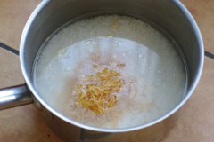 Rincer le riz. Le tremper dans de l’eau chaude pendant 15 minutes. Egoutter.