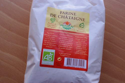 NB : La farine de châtaigne coûte un bras (le kg à 11 eur pour de la farine, je savais pas que ça pouvait exister…) mais l’idée était de goûter une première fois (je ne suis pas déçue, je l’ai même goûté crûe, trop bonne !). On en trouve en magasin BIO.