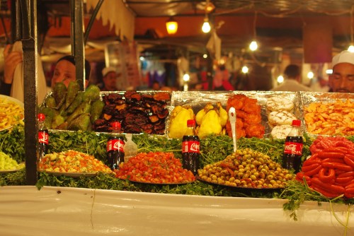 Le soir, sur la place magique de Jemaa el Fna, les stands de restauration…