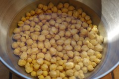 La veille, faire tremper les pois chiches. Le lendemain, égoutter les pois chiches.