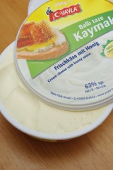 NB : – J’ai trouvé une boîte de « kaymak », une sorte de crème turque. La consistance est exactement la même que celle du mascarpone et même le goût. Je l’ai pris au miel (c’était pas voulu !).