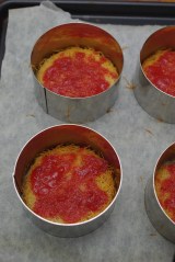 La quantité de pâte suffit pour 5 cercles de 8 cm de diamètre, la crème pour 6 à 7 cercles (j’avais du surplus à la fin)…