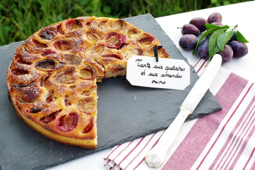 Le fait d’avoir des fruits dans son jardin résout en partie le problème de la question « Qu’est-ce que je pourrais bien cuisiner pour ce soir ? ». On cherche alors forcément une recette composée du fruit en question. Et en ce moment, je me retrouve avec des kilos de petites quetsches à épuiser (et les récoltes de pommes, poires et figues ne vont pas tarder). C’est délicieux nature mais à force on a aussi envie de varier et d’en manger sous forme de pâtisserie.