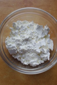 Réduire le mastic en poudre (à l’aide d’un mortier ou d’un verre).