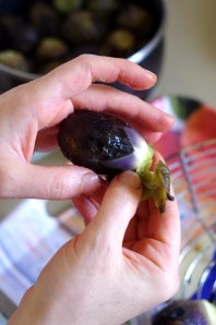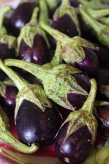 On peut trouver des mini aubergines dans le quartier indien de Paris (Faubourg Saint Denis). Sinon, les aubergines que j’ai utilisées pour cette recette me viennent de Jordanie. Et en effet, au Levant on a plusieurs variétés de minis aubergines, dont les violettes claires.