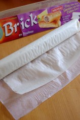 Petite, c’était moi qui coupait les feuilles de brick pour ma mère, et j’aimais bien le faire. Aujourd’hui cette étape m’énerve un peu (couper et décoller des feuilles c’est loin d’être passionnant). Mais il y a pas très longtemps, j’ai découvert des feuilles de brick en rouleau, et j’en suis fan ! Je trouve ça super pratique : pas besoin de séparer feuille par feuille, on coupe comme on veut, et ça se conserve très bien (vous pouvez faire qu’une seule brick et remballer votre rouleau).