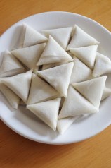 Prochaine étape que j’espère : des bandelettes de feuilles de brick toutes prêtes ! Au Moyen-Orient, on vend des bandelettes de pâtes pour la confection des samboussak (de forme triangulaire). Y a plus qu’à faire pareil !