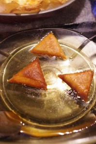 Ces triangles au amandes sont appelés Briouates (Briwat) au Maroc,  et Samsa en Algérie ou en Tunisie. D’un pays à l’autre, on pourra constater quelques différences : miel ou sirop, feuille de brick ou pâte maison spéciale…La farce traditionnelle demeure aux amandes.