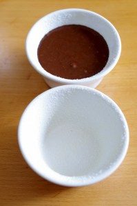 La réussite du mi-cuit réside dans la cuisson, alors à vous de tester, ça se joue à une minute près ! Avec mon four, mes moules (et je ne sais quel autre paramètre qui rentre en jeu) au bout de 8 min, j’ai quelque chose de « mi-cuit » mais trop coulant à mon goût, et qui n’a pas eu le temps de gonfler suffisamment (cf les photos).