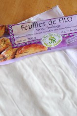 • un paquet de pâte filo (20 feuilles) –> mais qui ne sera pas utilisé entièrement