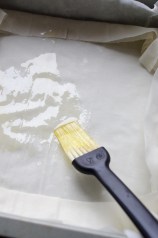 Disposer 2 feuilles dans le moule, puis badigeonner de samneh au pinceau.