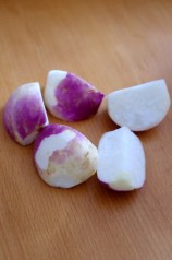 Nettoyer les navets. Les couper en quartiers.
