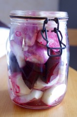 5. Très intéressante cette recette ! J’aime beaucoup les pickles (ma grand-mère hongroise en fait toutes sortes aussi) ainsi que le navet alors cette association m’intrigue ! Et cette couleur rend le tout encore plus attrayant (je n’y peux rien, ça fait ressortir mon penchant « girly » !)…