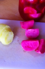 Couper la betterave en 4 morceaux, les ajouter entre les navets.
