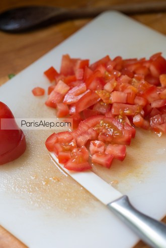Couper les tomates en dés (vous pouvez les peler au préalable mais personnellement la peau des tomates ne me dérange pas)